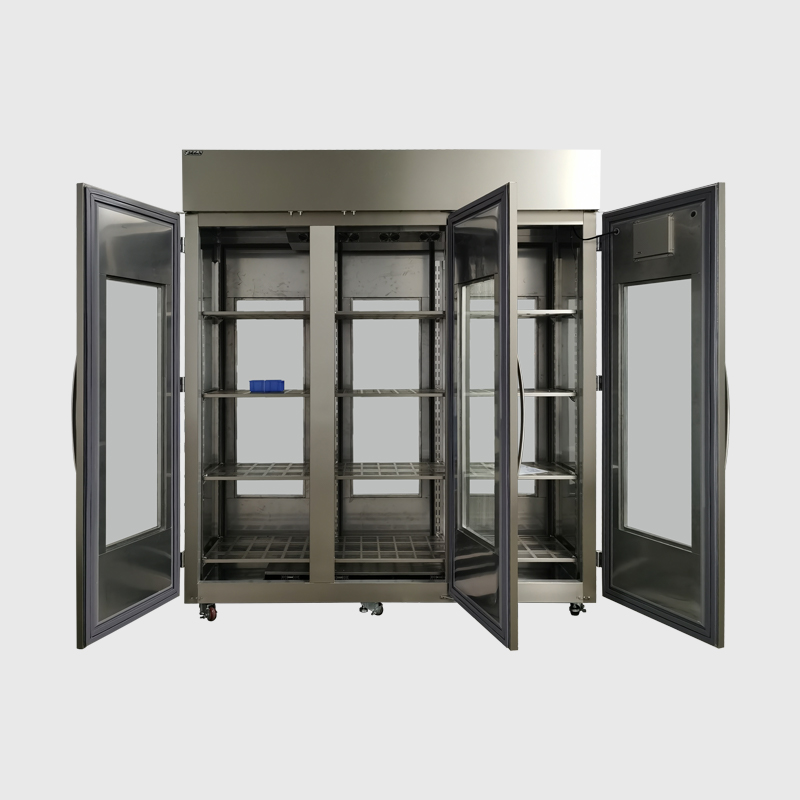 1、櫃   門:大麵積優質雙層鋼化玻璃組成,櫃門裝有永磁密封膠條,確保櫃內的密閉性。