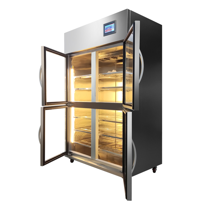4.櫃門:采用大麵積雙層真空鋼化玻璃組成,確保櫃體牢固。櫃門裝有永磁密封膠條,確保櫃內的密閉性;