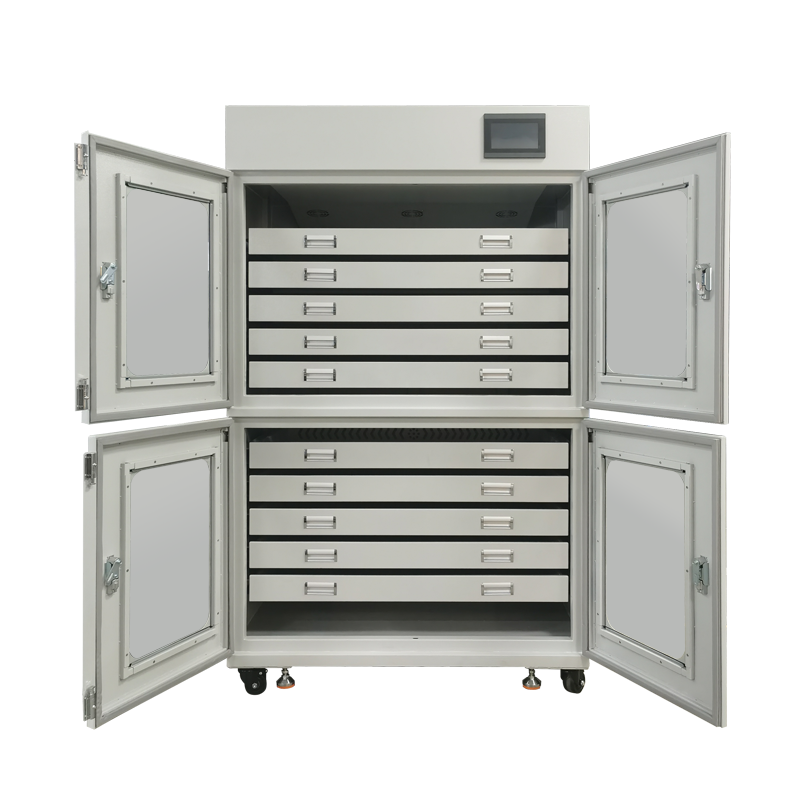 15、除濕單元:並聯兩套除濕係統,循環交替除濕-再生模式,實現連續不間斷除濕以確保櫃內濕度的穩定,除濕過程對櫃內溫度不造成影響;
